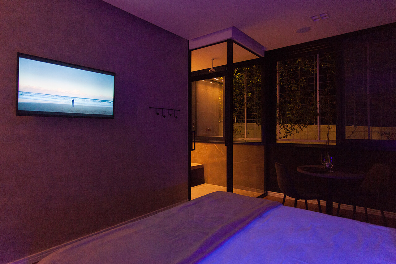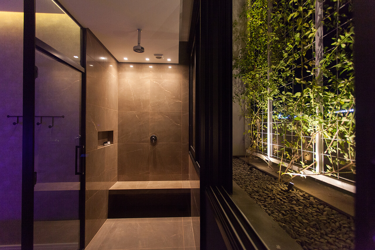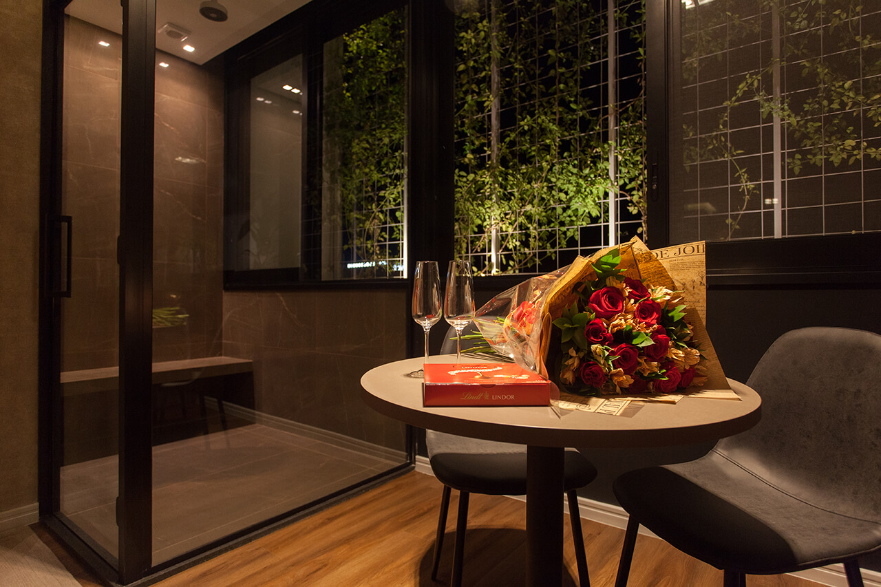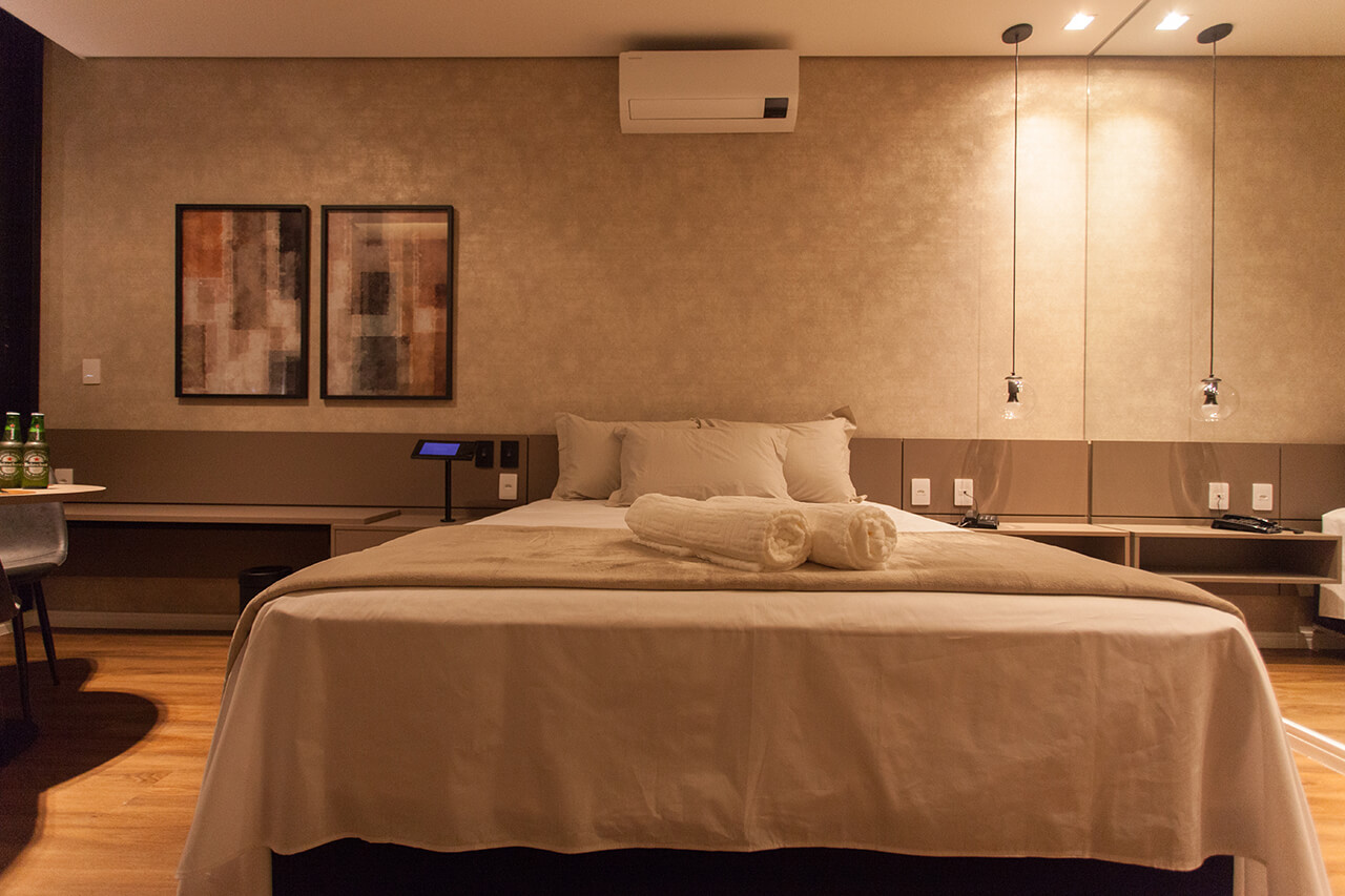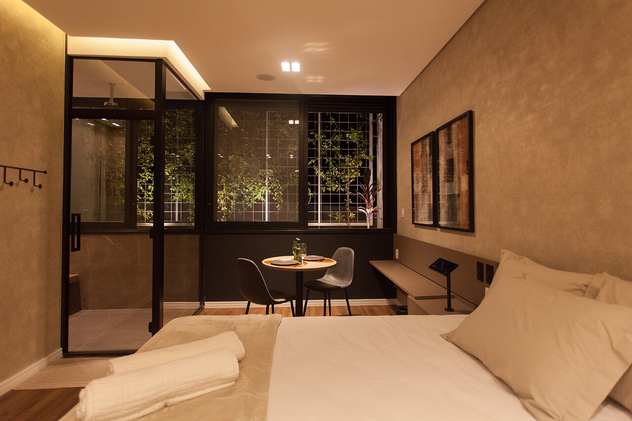 Ambiente luxuoso, com arquitetura refinada. Se diferencia pela enorme janela com vista para o jardim vertical, o que eleva o nível da sua experiência.